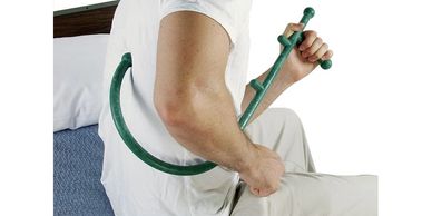 A specialized stainless steel instrument is used to detect and treat fascial restrictions, soft tissue adhesions and scar tissue.
